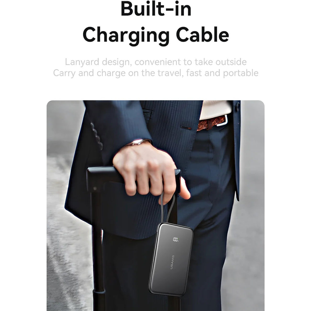وجود کابل Type-C متصل به پاوربانک یکی دیگر از مزایای بزرگ این مدل است. بسیاری از پاوربانکها برای استفاده به کابل جداگانه نیاز دارند، اما در این مدل کابل تایپسی بهصورت ثابت متصل شده است. این موضوع استفاده از دستگاه را بسیار سادهتر و سریعتر میکند و دیگر نیازی به نگرانی بابت فراموش کردن یا گم شدن کابل جداگانه نخواهید داشت. همچنین، سرعت انتقال انرژی از طریق درگاه تایپسی بسیار بالاست و این کابل یکپارچه به شما امکان میدهد گوشیهای اندرویدی جدید و حتی برخی لوازم جانبی دیگر را بهسرعت شارژ کنید.