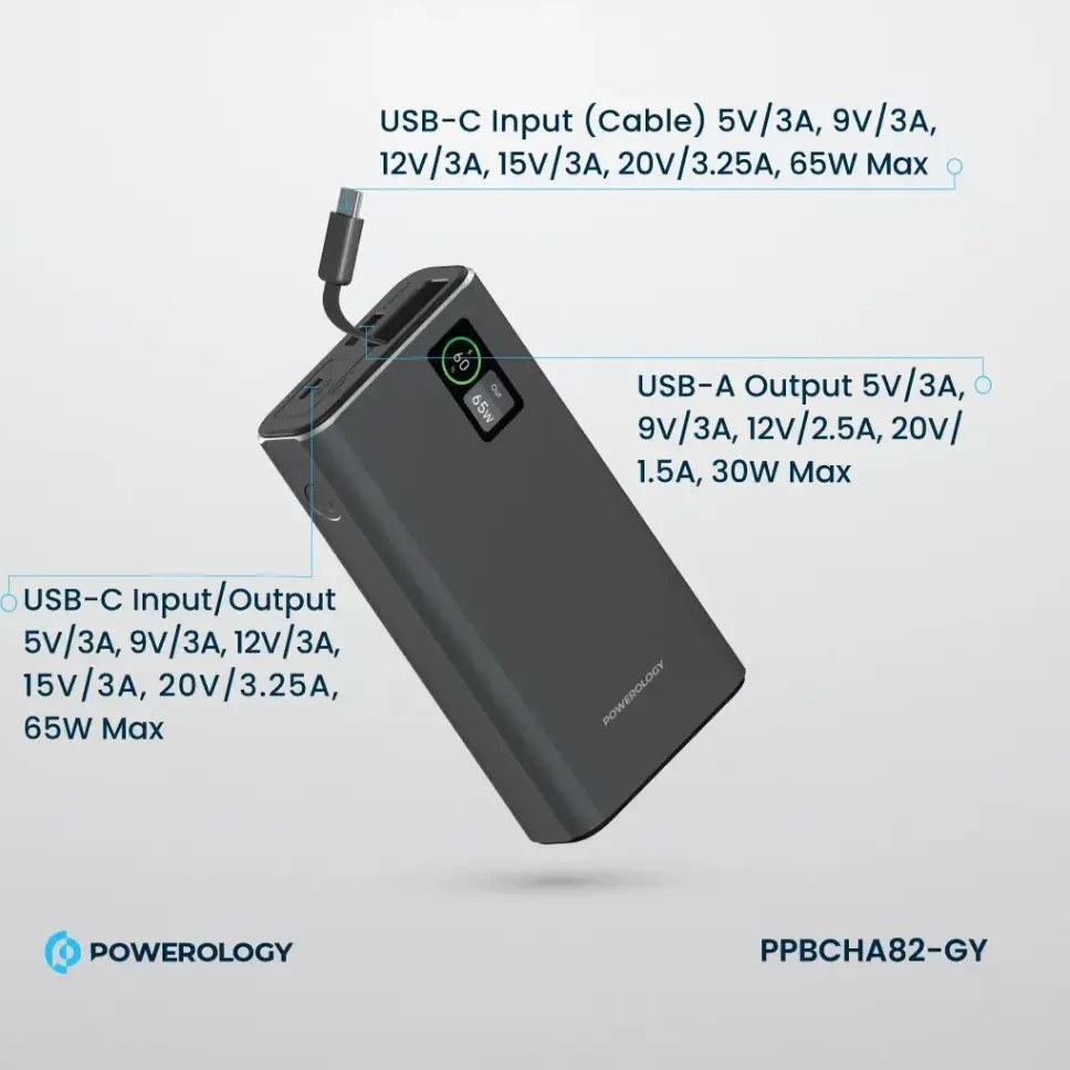 توان خروجی 65 وات از دیگر نقاط قوت کلیدی این دستگاه است. این میزان توان باعث می شود پاورولوژی PPBCHA82 بتواند حتی لپ تاپ ها و دستگاه های پرمصرف را نیز با سرعت بالا شارژ کند. پشتیبانی از فناوری شارژ سریع (Fast Charging) و سازگاری با استانداردهای مختلف شارژ نیز سبب می شود کاربر بتواند در کوتاه ترین زمان ممکن دستگاه های خود را به حداکثر ظرفیت برساند. همین توانایی در شارژ سریع و گسترده دلیل محکمی برای ارزشمند بودن قیمت این پاوربانک است.