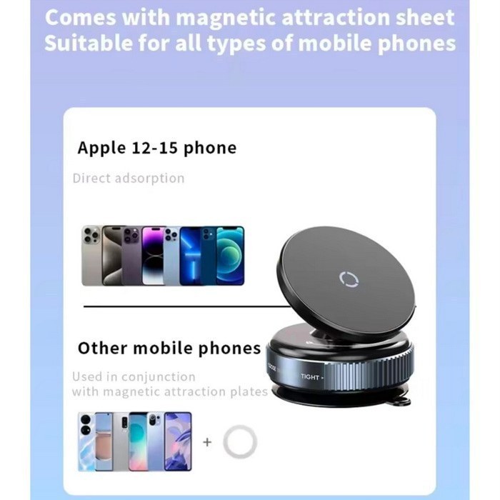 علاوه بر مکش قوی، این مدل دارای آهنربای داخلی قدرتمند است که گوشی را به صورت ایمن روی هولدر ثابت نگه می دارد. کافی است صفحه فلزی مخصوصی که همراه محصول ارائه شده را پشت گوشی یا درون قاب آن قرار دهید. از آن پس تنها با نزدیک کردن گوشی به هولدر، دستگاه به طور خودکار و محکم جذب خواهد شد. این سیستم مغناطیسی نه تنها سریع و ساده است، بلکه ثبات فوق العاده ای ایجاد می کند.